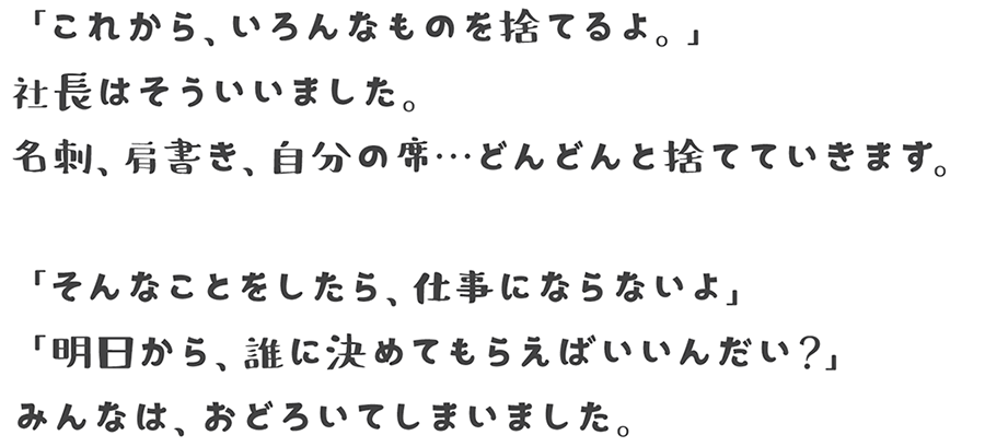 名刺、肩書き、自分の席…どんどんと捨てていきます。